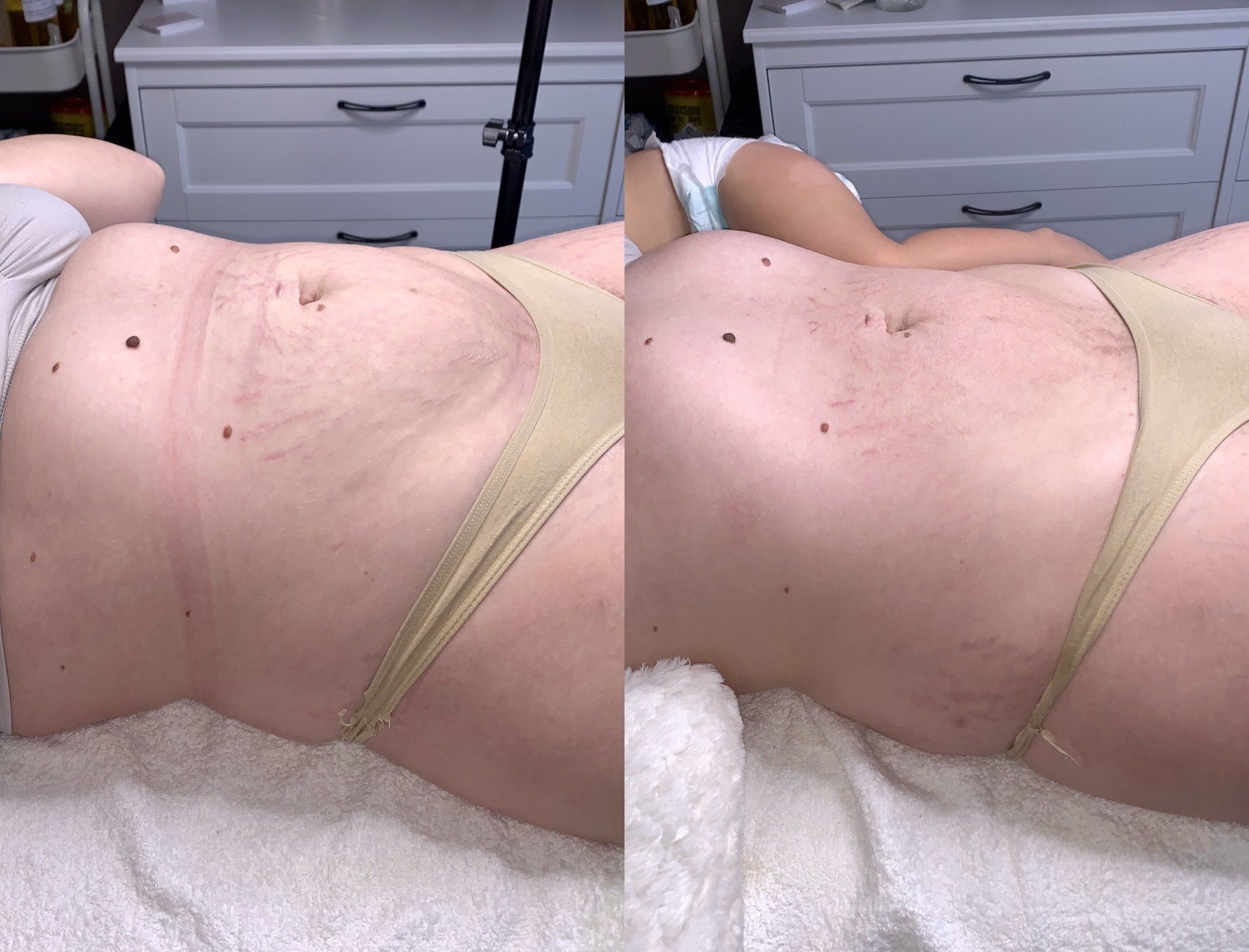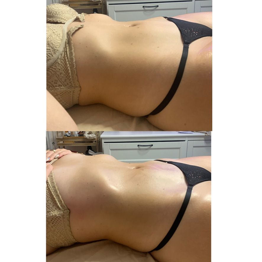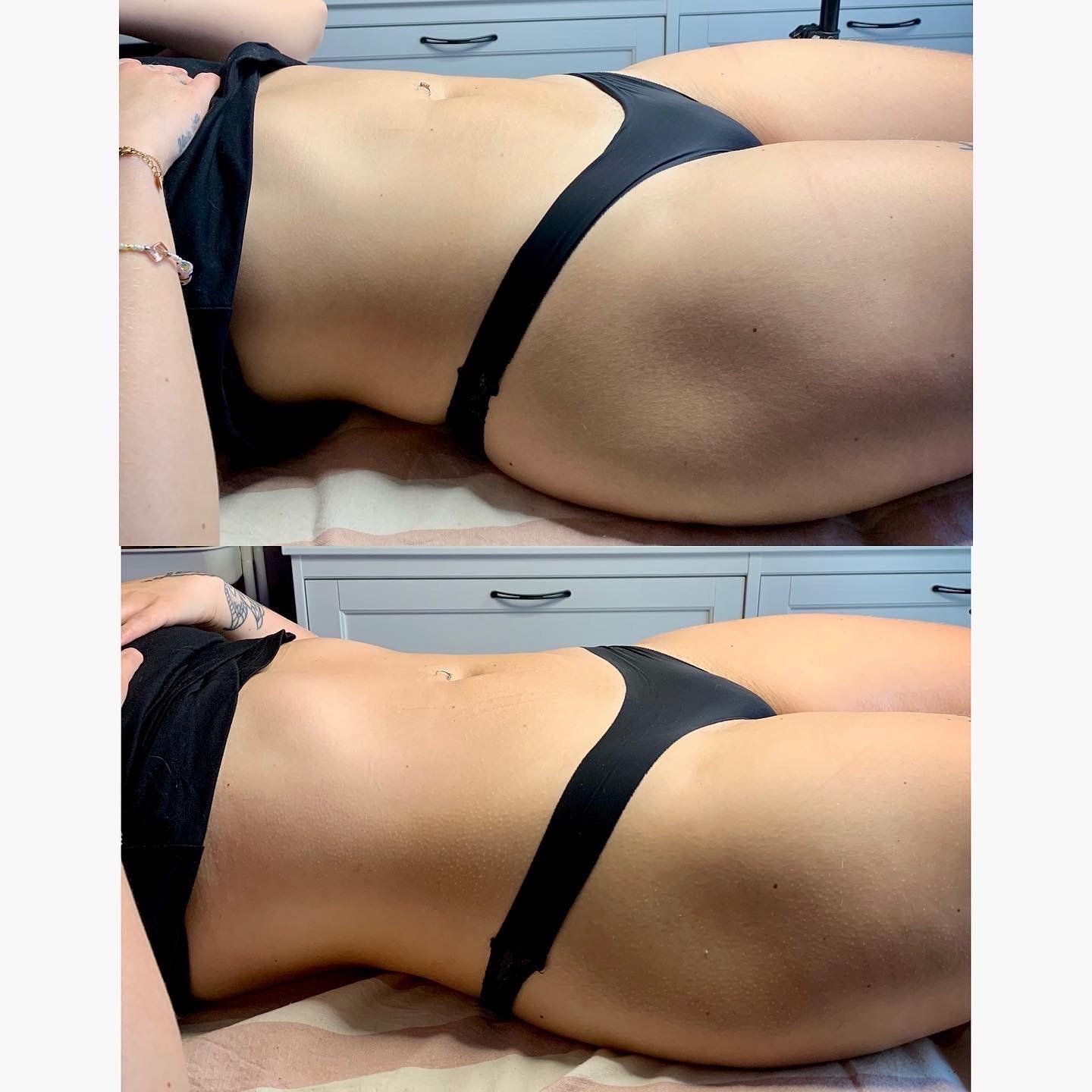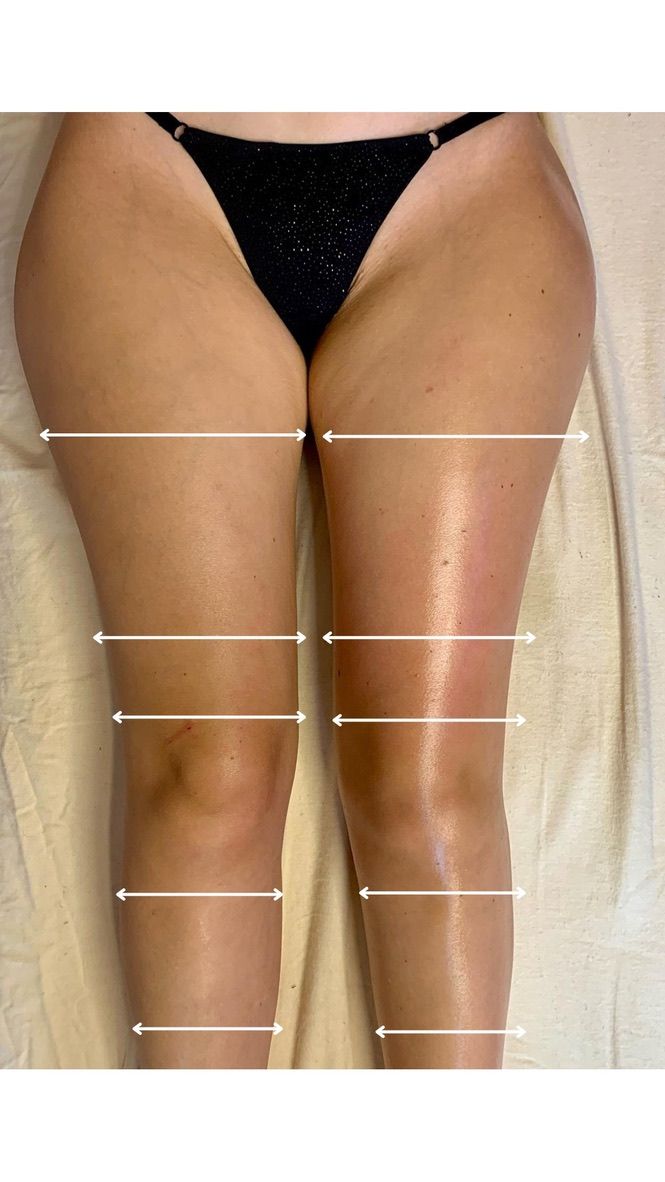 Résultat après 1h30 de séance, un mélange entre des manoeuvres de drainage lymphatique et de madérotherapie.
